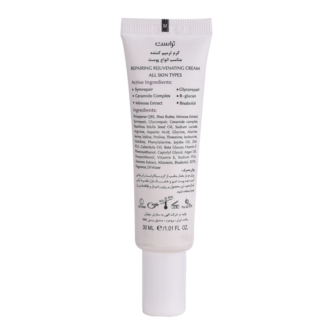 ترميم سريع انواع زخم بازسازنده پوستهاي آسيبديده ايدهآل براي بعد از ليزر و جراحي پوست ضدالتهاب، قرمزي، خارش و سوزش پوست التيامبخش سريع و رطوبترسان آنتيباكتريال، ضدعفونيكننده و آنتياكسيدان جلوگيري از ايجاد اسكار و جاي زخم مناسب انواع پوست (صورت و بدن) مواد موثره استرولهای گیاه براسیکا کمپستریس، اولیگوگالاکتومانان، کمپلکس سرامید، بتاگلوکان، عصاره میموزا، بیزابولول
