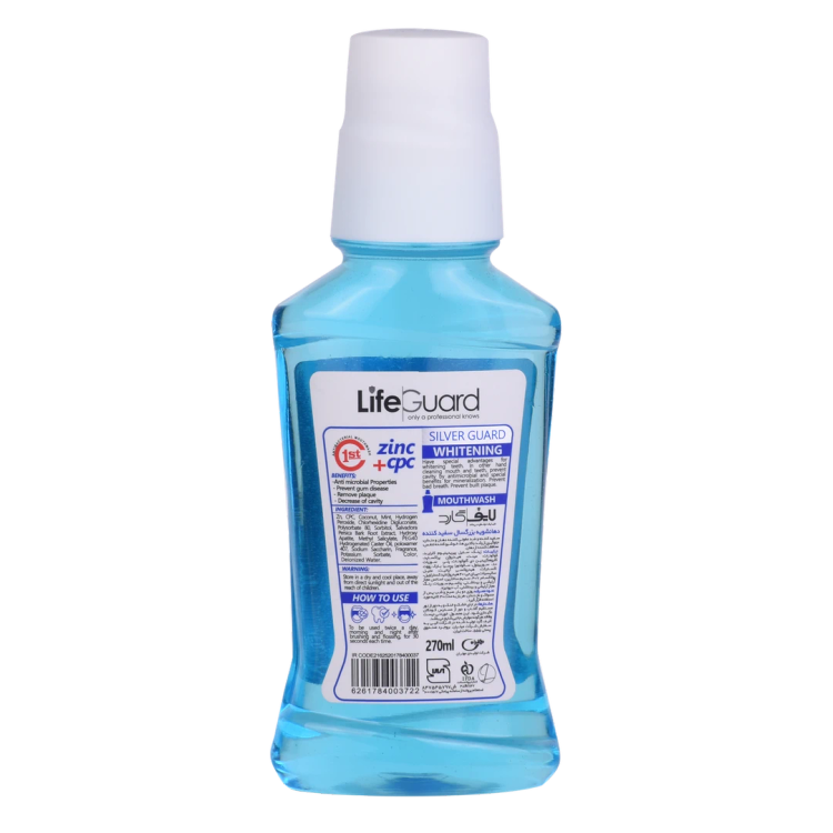 دهانشویه بزرگسال سفیدکننده (Silver Guard) برند لایف گارد با حجم 270 میلی لیتر